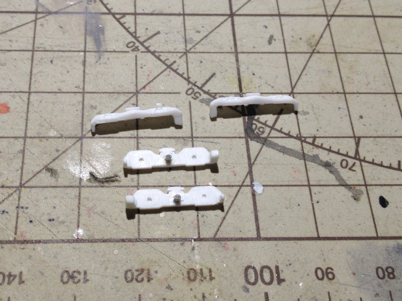 台車は薄く削り、ランナー引き伸ばし線でダボ付けします。